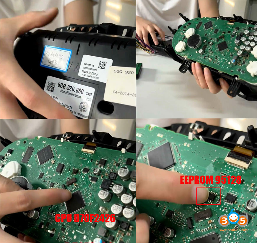 This VW Golf VII Johnson control JCI cluster is different as regular MQB cluster. It has a CPU processor D70F3426 and a 95128 eeprom chip. CG100X will do mileage correction for this cluster. Check instructions below:
