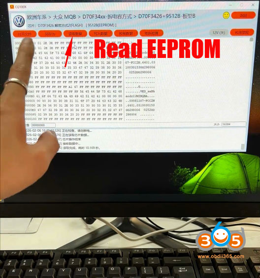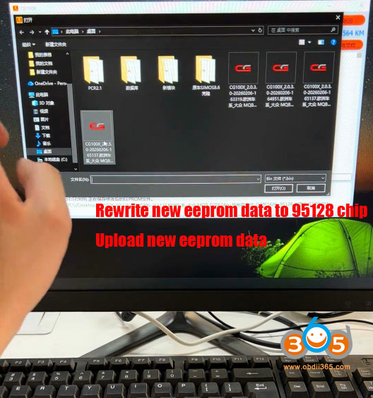 Upload new modified eeprom data (pay attention to the file name) and rewrite new mileage data to the 95128 chip.