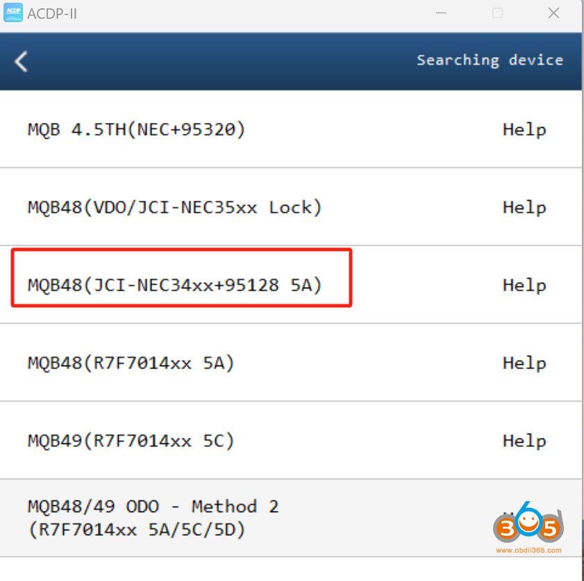 ACDP software has a separate menu, go to MQB48 (JCI- NEC34XX+95128 5A)- D70F2426+92128 option.