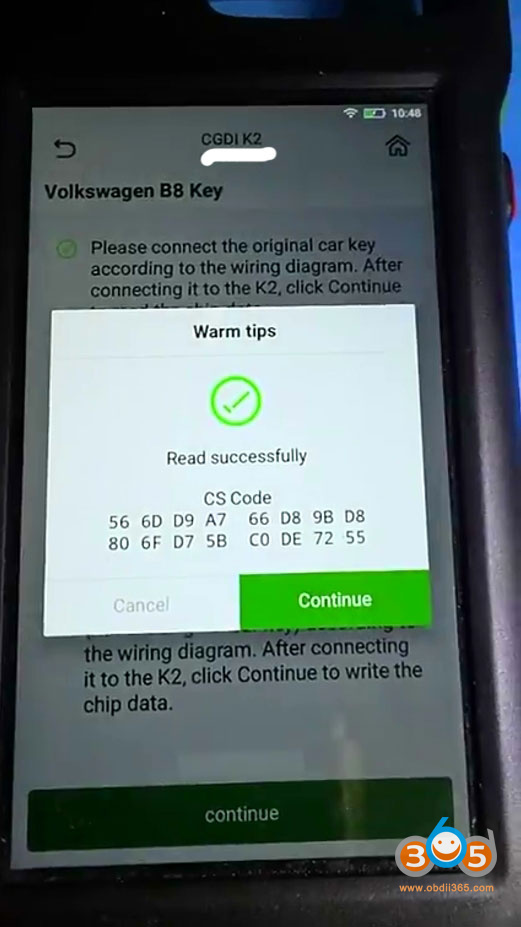 Read key data and CS code successfully.